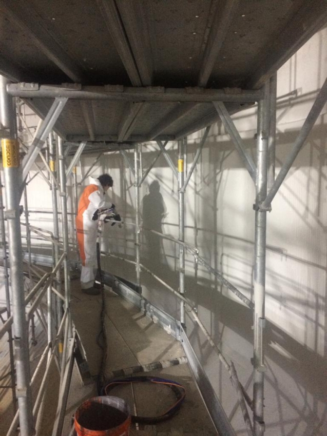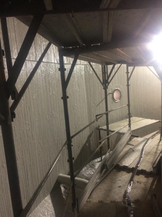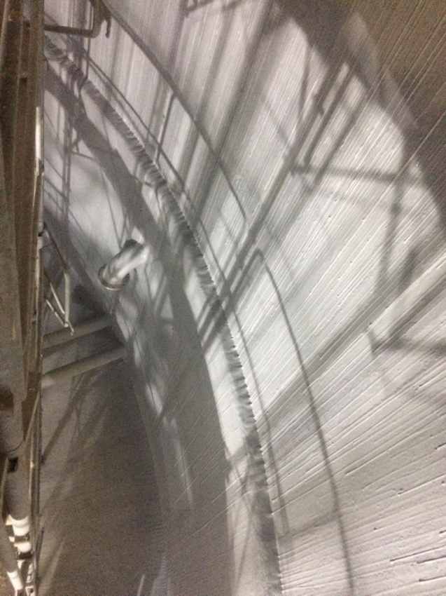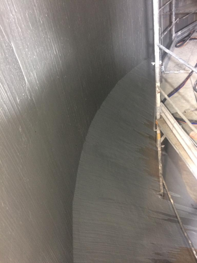 La poliurea utilizzata è una formulazione speciale per rivestimento antiacido di strutture industriali.