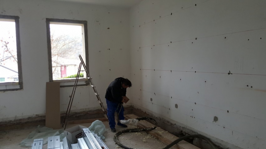 Applicazione Poliuretano a colata per coibentazione isolamento muratura loc. Valdobbiadene