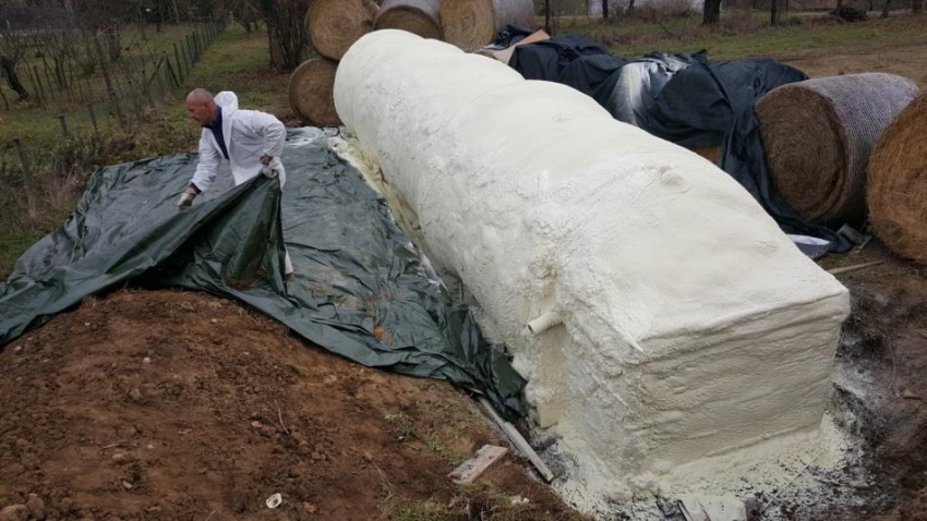 Applicazione Poliuretano a spruzzo per coibentazione isolamento cisterna deposito loc. Modena