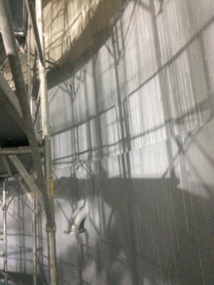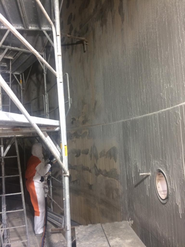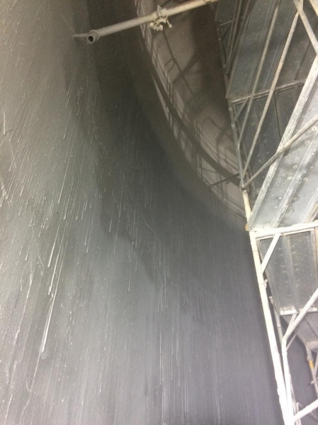 La poliurea utilizzata è una formulazione speciale per rivestimento antiacido di strutture industriali.