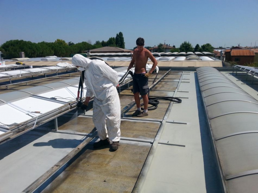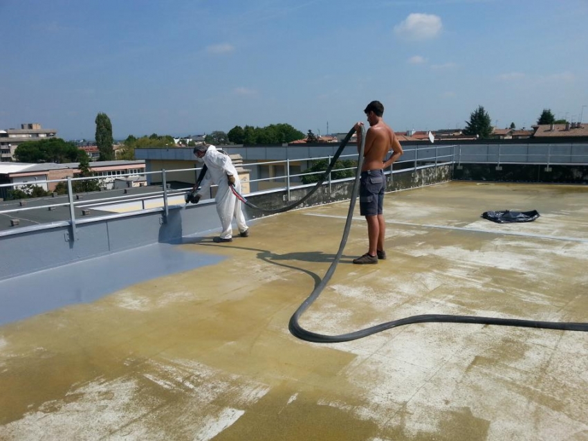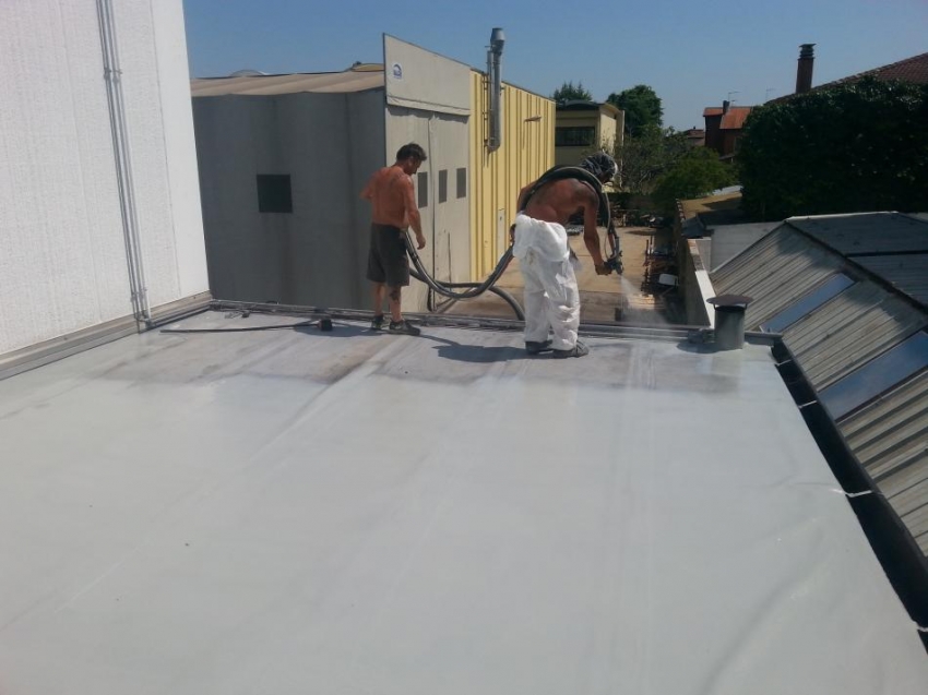 Il sistema a base di poliurea applicata a spruzzo si adatta perfettamente per la manutenzione e il rifacimento di vecchie coperture metalliche in lamiera o membrana bituminosa degradata sopratutto in geometrie complesse e in presenza di corpi passanti, impianti etc grazie alla sua perfetta aderenza e adattabilità alle superfici di applicazione, questo sistema è adatto per la manutenzione di coperture, per la protezione agli UV di coibentazioni in poliuretano spruzzato etc.