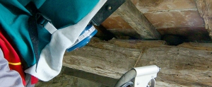 Pulizia travi in legno, travetti, soffitti in legno, soffitti a cassettoni, sabbiatura superfici in legno in genere.